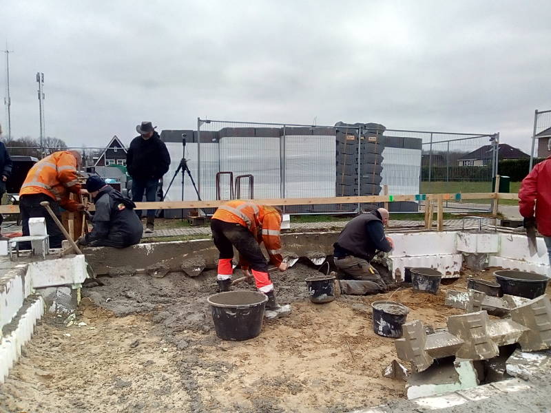 het ging bijna helemaal goed, een deel van de bekisting kon de beton niet houden .