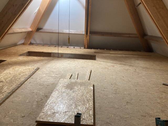 Berry en Guus hebben voor ons de verdieping vloer gelegd met 3cm OSB , dat zijn zware lummels