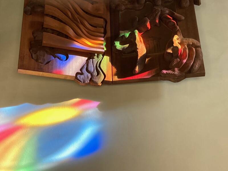 De magistrale zon ( Spinvis) schijnt op wonderlijke wijze door het gras in lood en werpt zijn kleuren door de kamer .
